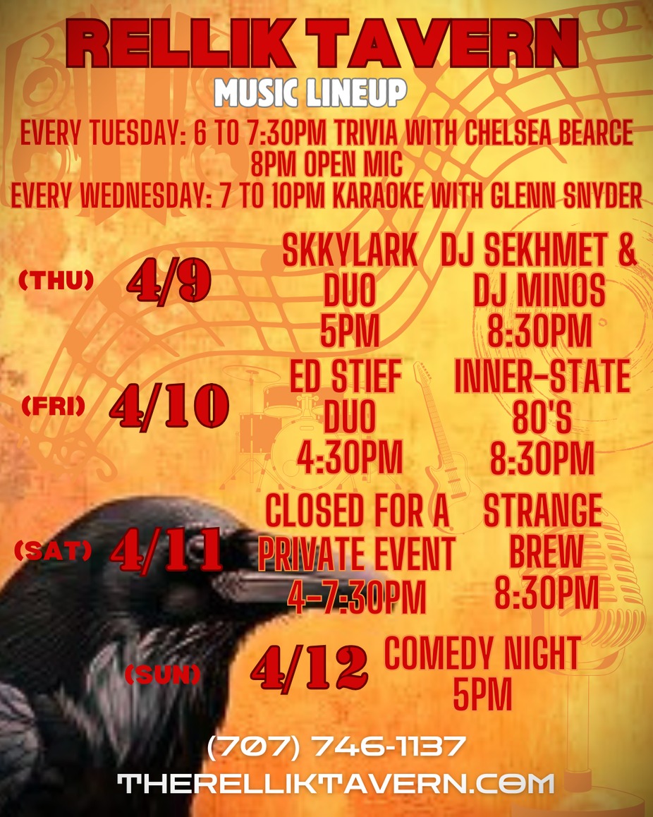 TUESDAY 4/7- 6PM -TRIVIA NIGHT 8PM - OPEN MIC