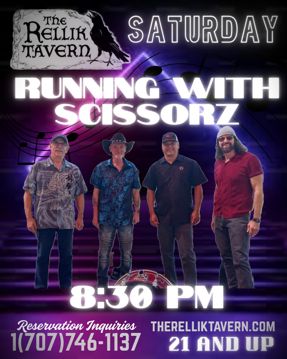 Running With Scissorz is an up and coming, high energy rock cover band that has been gaining quite a bit of momentum in Northern CA. They play hits ranging from the 60's through today. From southern rock, classic rock to alternative rock, there's something there for everyone. They are a 4 piece band with 3 vocalists that always leaves the crowds asking for more. Be sure to catch their show and bring a friend or two! 8:30pm, no door!