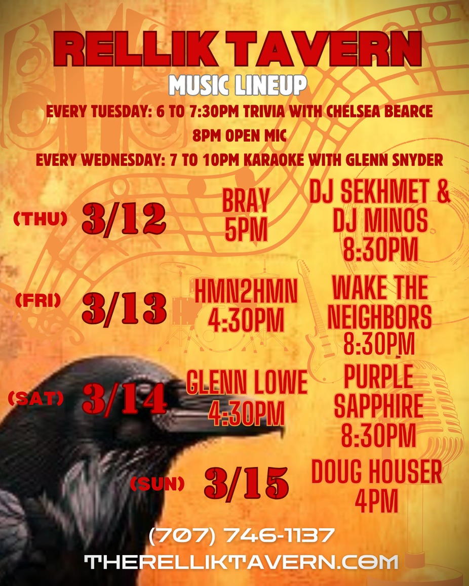 TUESDAY 3/10 6PM -TRIVIA NIGHT 8PM - OPEN MIC