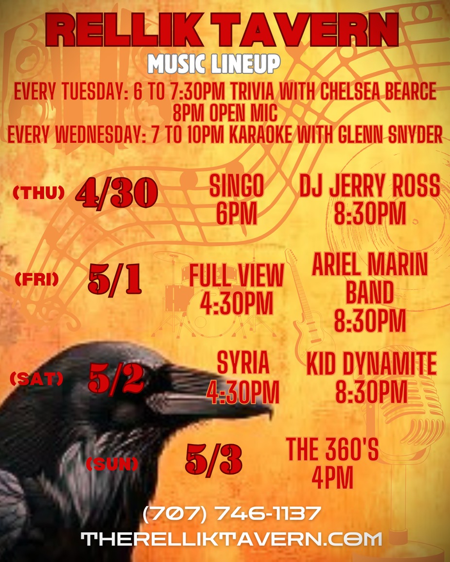 TUESDAY 4/28- 6PM -TRIVIA NIGHT 8PM - OPEN MIC